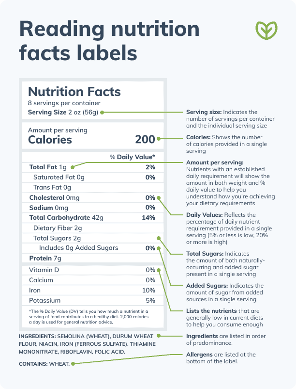 If a food comes in a package, it’s undergone some degree of processing. Scrutinize the nutrition facts label and ingredient list to determine the quality of the food. Is the ingredient list long? Does the food contain ingredients you can’t pronounce? Does the food contain added sugar or artificial ingredients? If the answer is “yes” to any of these questions, the food is likely highly processed. The graphic below highlights some important features to look for on a nutrition facts label.